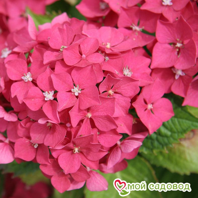 Гортензия крупнолистная Мини Хорнли –  небольшой куст, которые отлично смотрится в горшках, высота взрослого куста до 70 см., диаметр шаровидных соцветий 15 см. Выбирайте не ветреное место для гортензии, в зимний период, лучше перенести кустарник в более теплое помещение. Цвет лепестков цветоноса зависит от почвы, цвет может меняться от нежно-розового до насыщенного красно-розового.    Рекомендации к уходу: Гортензия цветет на прошлогодних побегах, поэтому обрезка не рекомендуется; под зиму срезают соцветия, весной вырезают только погибшие или очень старые ветви.