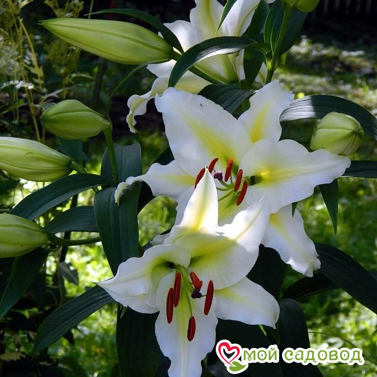 ОТ-гибриды (лилейные деревья) – это гибриды, полученные в результате скрещивания восточных гибридов с трубчатыми лилиями. Ценятся за свою необычайную красоту, обильное цветение (на одном цветоносе может располагаться до 40 цветков), прочность стеблей и необычайно высокий рост. Цветки могут быть как кубковидными, так и пониклыми. Обладают ярко выраженным ароматом, зацветают раньше других сортов. Посадка лилии: Глубина посадки лилии зависит от почвы. Если почва легкая – можно углубить на 12-13 см, что составляет 3-4 диаметра луковицы. Если же почва глинистая или тяжелая, достаточно двух диаметров, глубина лунки не более 5 см. В выкопанную ямку насыпьте слой песка, установите луковицу донышком на песок, присыпьте сверху остатками грунта, сверху замульчируйте. Уход за лилией: Пышных бутонов у лилий можно добиться, соблюдая обычные правила ухода: в первый год лилиям не нужна весенняя подкормка, удобрения вносятся разово за сезон, после цветения. Но это лишь в том случае, если перед посадкой вносилось удобрение. Перед началом цветения высокорослые сорта рекомендуется подвязать. После цветения засохшие бутоны удаляют. Полив умеренный: лучше не долить, чем перелить. Если цветок начал чахнуть и имеются подозрения на перелив – смешайте по столовой ложке речного песка и древесной золы, высыпьте под цветок и не поливайте ближайшую неделю. Полив лилии важно проводить под корень, старайтесь исключить попадание воды на листья, это провоцирует ожоги на солнце и распространение грибковых заболеваний.