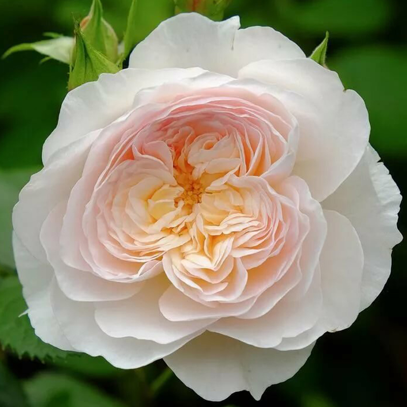 Очень красивая роза с довольно самобытными сильно ароматными цветками. Куст пряморослый, густой, высотой 120 см и шириной 105 см. Цветки махровые, аккуратные, плоской формы, нежно-розовые с абрикосовой серединкой. Серединка состоит из более мелких лепестков, окружающих глубоко сидящие тычинки. Аромат сильный, чая и старинных роз с восхитительными нотками лимона и грейпфрута. Цветение повторное. Листва устойчивая к заболеваниям.