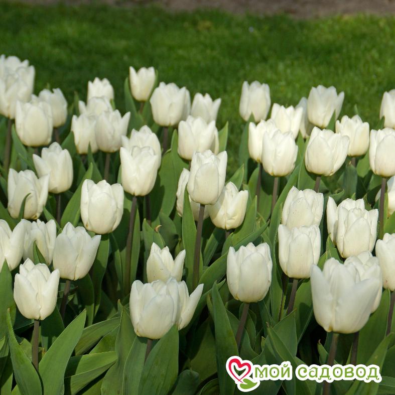 Белоснежный тюльпан, расцветает в апреле.Продолговатые белоснежные бокалы яйцевидной формы Впечатляет своими крупными цветами,устойчив в дождливую погоду.Принадлежит к сорту простые ранние.